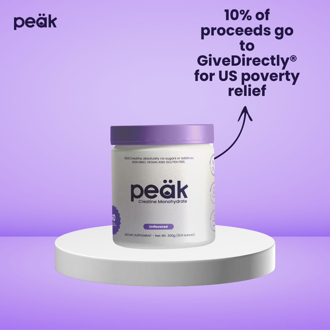 peäk Creatine uses a breakthrough micronized creatine monohydrate formulation that dissolves quickly, stays stable, and absorbs more efficiently—so your muscles and brain can access usable energy faster and with less digestive stress.